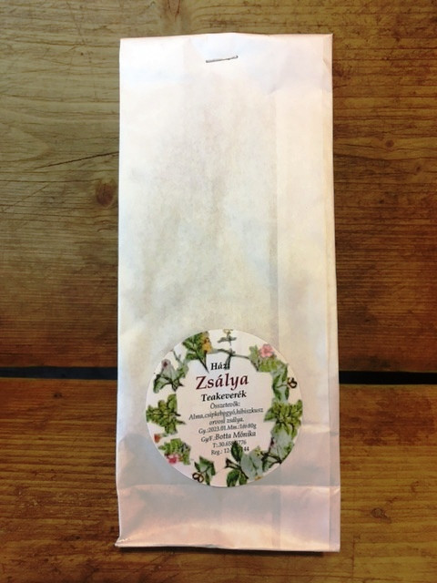 Összetevők (szárított/aszalt): zsálya, csipkebogyó, alma, hibiszkuszvirág.80g Fogyasztás: 1 púpos ek 1L forrásban lévő vízhez. 15-20 perc áztatás után szűrhető, fogyasztható.