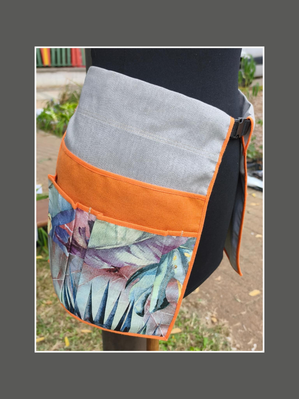 A kert szerelmeseinek készült ez a két oldalt hordható, trópusi levél mintás, erős pamutvászonból készült kertészkötény. Olyanoknak, akik szeretnek csinosan és mindeközben praktikusan kertészkedni! Mivel a lapok oldalt helyezkednek el, így hajolgatás közben és leguggoláskor nincsenek útban, nem esik ki belőlük semmi, lefelé lógnak a föld felé. A szükséges dolgoknak az egyik lapon 1 nagy és két kisebb, a másik lapon 1 nagy, 2 kisebb zseb és egy keskeny tolltartórész áll rendelkezésre. A derékra hevederes övvel, gyorskapcsolóval rögzíthetjük. Az övön van egy állító, melynek segítségével beállíthatjuk a méretünkre. Egy lap mérete: 27 cm széles, 33 cm magas. A szett két lapot és egy övet tartalmaz. A nagy zsebek mérete: 26 cm szélesek, 21 cm magasak. A kisebb zsebek mérete: 11-14 cm szélesek, 16 cm magasak, tolltartórész 2,5 cm széles, 16 cm magas. Az öv 64 cm és 118 cm között állítható. Vihetünk magunkkal akár metszőollót, kisásót, magokat, kötözőt, gombolyag spárgát, tollat, jegyzettömböt, mind kéznél lesznek! Kertbarátoknak ajándéknak sem utolsó!!! A kertészkötény szett 30°C-on mosógépben mosható! Minden termékem dohányfüst és állatmentes környezetben készült.