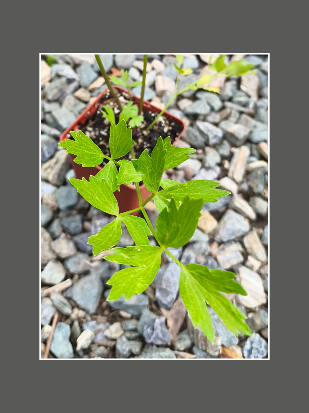 Évelő fűszernövény. A Maggi fűszer alapnövénye, nálam a húsleves kedvenc ízesítője. A növények jelenleg 15-20 cm magasak.