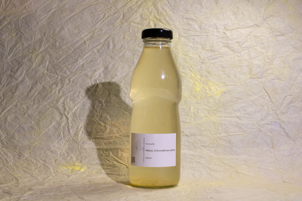 Hidegen, főzés nélkül készült, így a benne lévő méz megőrzi minden hasznos aktív anyagát. Összetevők: citromfű, víz, repceméz, cukor, citromsav, nátrium-benzoát.