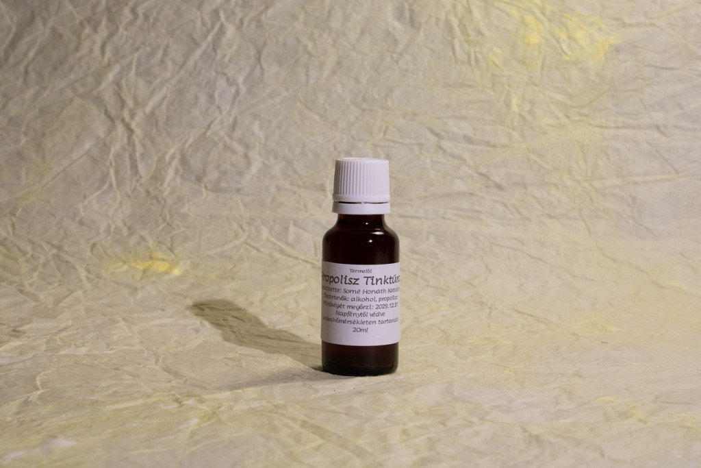 A propoliszt a méhek a fák, bokrok levélrügyeiről gyűjtik. Színe sárgától a nagyon sötétbarnáig változhat, attól függően, hogy milyen növényről származik. A propoliszt a méhek a kaptár fertőtlenítésére használják. Legfontosabb összetevői: flavonoidok, alifás és aromás savak, és azok észterei, illóolajok, ketonok, fenolok, benzoesav, aldehidek, rengeteg ásványi anyag és vitamin, stb. Ezen összetevőknek köszönhetően a legerősebb természetes antibiotikum (elsősorban a Gram pozitív baktériumok ellen hatásos), de hatékony gombák és vírusok ellen is. Kiváló immunerősítő. Legfontosabb felhasználási területei: fül-orr -gégészeti megbetegedések pl. torok és mandula gyulladás, hörghurut, középfül-gyulladás szív és érrendszeri betegségek emésztőrendszeri betegslgek pl.: idült vastagbélgyulladás szájüregi gyulladások külsőleg: gombás fertőzések, lassan gyógyuló, de nem nedvedző sebek, égési sérülések Immunerősítésre, rendszeres szedésre felnőtteknek napi 20 -30 csepp ajánlott, akut betegség esetén kúraszerűen akár napi 3x 20 csepp is szedhető. Gyermekeknek 1 éves kortól adható. Adagolása: 2-3 csepp/10 testsúlykilogramm. Erős íze miatt érdemes mézbe, nem forró italba keverni, vagy kockacukorra cseppenteni. Ritkán előforduló allergiás reakciók miatt ajánlatos első használat előtt bőrpróbát végezni: kézfejre cseppenteni 2-3 cseppet, vagy első alkalommal csak 2-3 cseppet bevenni . Szobahőmérsékleten, közvetlen napfénytől védve tárolandó. Használata során vegyük figyelembe, hogy a bőrön akár napokig barna elszíneződést nagy, textíliából nem eltávolítható.