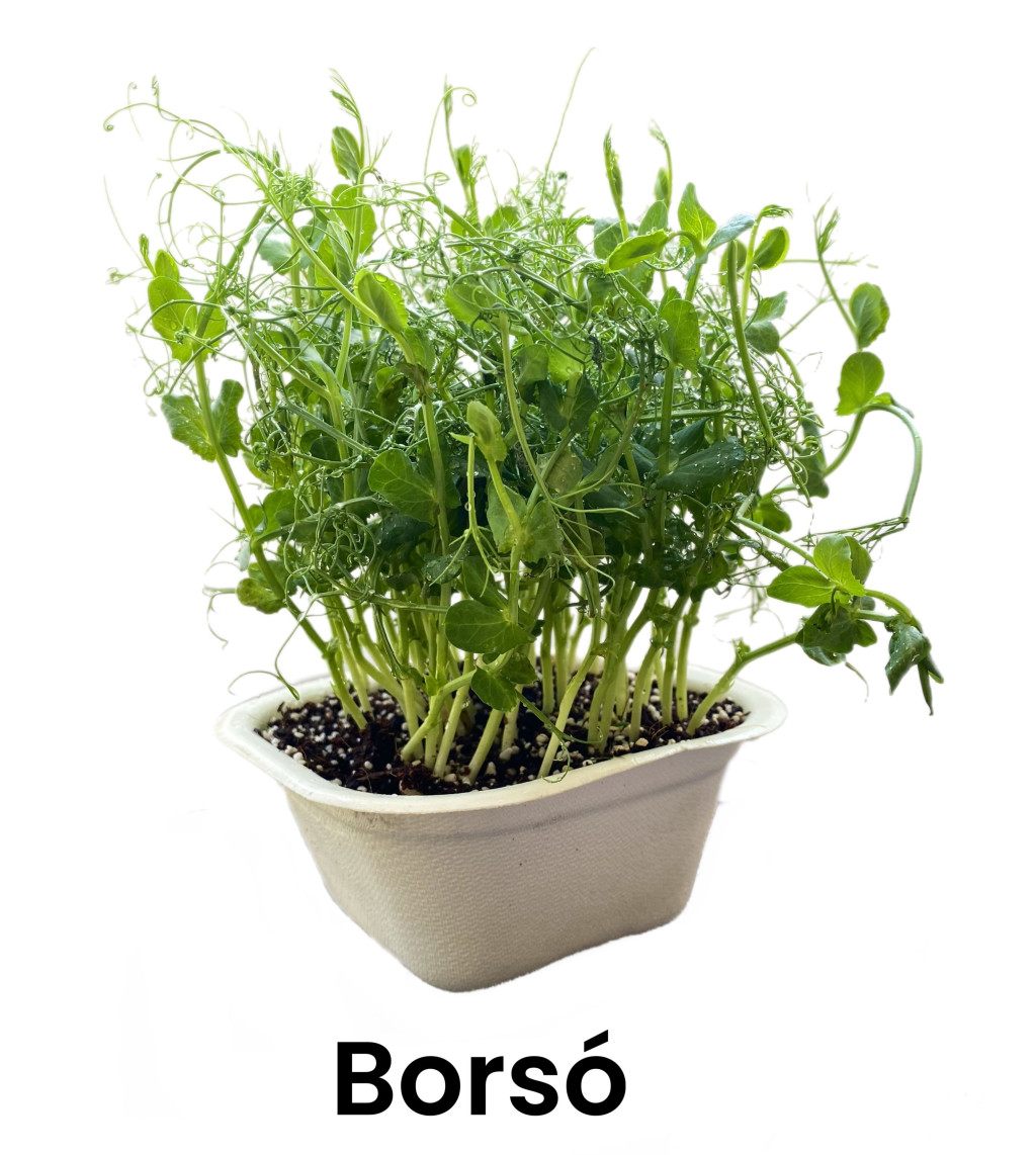 Mikrozöldjeinket élve, tehát nem levágott formában, árusítjuk.